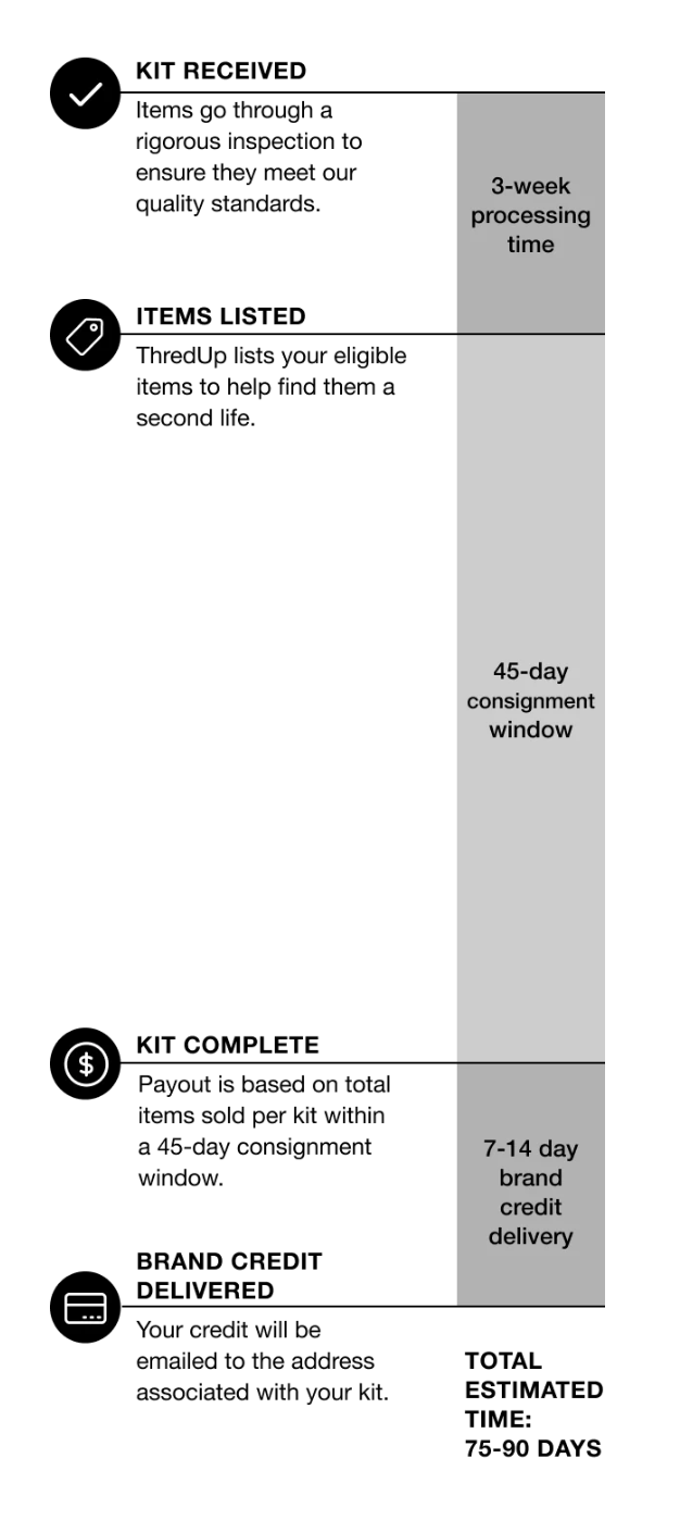 *Tommy Hilfiger credit is based on the total items sold per kit within a 45-day consignment window. Once that window has passed, please allow up to 4 weeks for Tommy Hilfiger credit to be sent in the form of an e-gift card to the email address associated with your ThredUp kit.